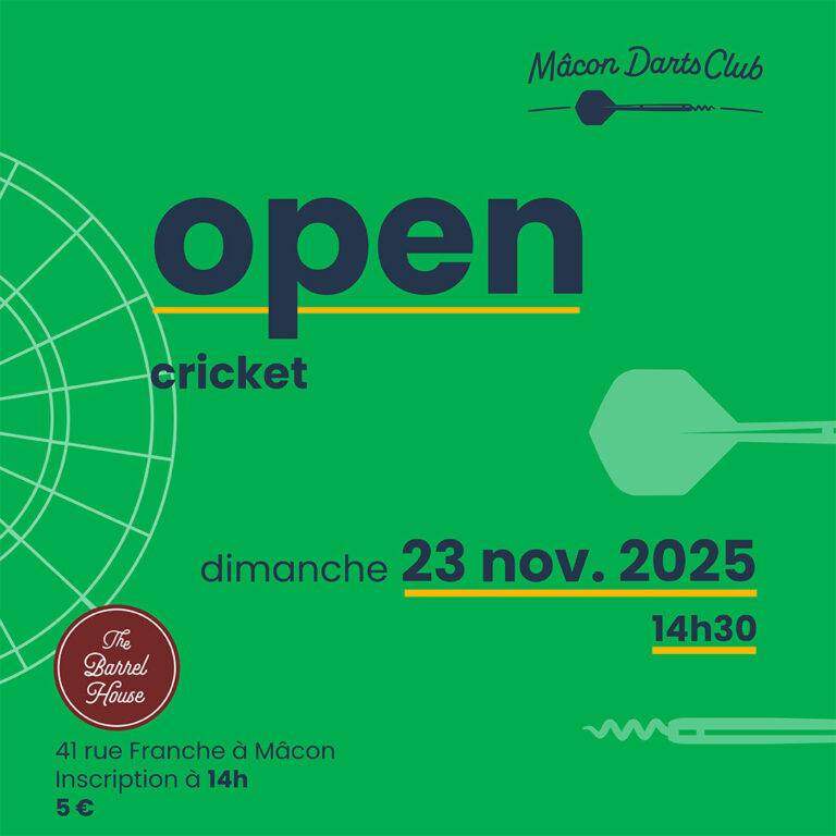 Lieu : Barrel House (41 rue Franche à Mâcon). Inscription : 5 € à 14h. Format : cricket